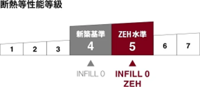 無印良品のリノベーションでは、2015年のMUJI INFILL ZERO発売以来、性能にこだわり高い基準でマンションリノベーションをし続けております。永く安心して住んでいただけるように、リノベーションの施工対象を新耐震基準のマンション・団地に限定し、フルスケルトンにして躯体やサッシなどの共用部分以外を作り直し、高性能断熱材やインナーサッシを用いて温熱環境を整えてきました。また、2024年1月より、高断熱・高気密の住まいを求めるニーズに応えるため、断熱性能等級5、一次エネルギー消費量等級6と国内最高水準のリノベーション「MUJI INFILL 0 ZEH水準リノベーション」をリリースいたしました。