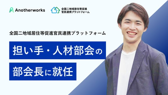 複業したい個人と企業や自治体を繋ぐ、総合型複業マッチングプラットフォーム「複業クラウド」を運営する株式会社Another works(本社:東京都港区、代表取締役:大林 尚朝)は、「全国二地域居住等促進官民連携プラットフォーム」にて新設された“担い手・人材部会”の部会長に任命されたことをお知らせいたします。担当代表として、Another works共創事業責任者の犛山創一が就任いたします。場所にしばられない働き方や地域でのなりわいの確保における支援を強化し、二地域居住の普及に寄与してまいります。