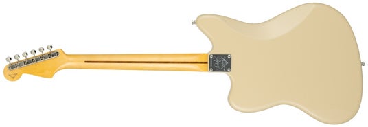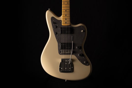 『INORAN Jazzmaster(R) Desert Sand』は、シグネイチャーモデルとしては初めてメイプル1ピースネックを採用し、ストラトキャスターのヘッドストックとの組み合わせが目を惹きます。ボディカラーには、1950年代中期にジャズマスターの開発初期で用いられていた“デザート・サンド”をセレクトし、クラシックなヴィンテージの雰囲気を纏いつつも、現代的な演奏環境に対応する洗練されたデザインが特徴です。ピックアップには、“マッドサイエンティスト”の異名を持つピックアップ職人、カーティス・ノヴァクが独自に設計したワイドレンジハムバッカーを搭載し、これまでの INORANのシグネイチャーモデルにはなかったハイゲインサウンドを出力します。さらに初号機から引き継がれている仕様として、Buzz-Stopの標準装備とプリセットスイッチの向きを90°反転することにより、INORANの特徴的なコードストロークやアルペジオプレイにおいても、ブリッジからの弦落ちやスイッチの誤動作の問題を解消しています。
