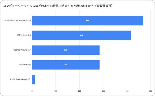 その結果、企業が最も警戒すべき侵入経路と、一般ユーザーが「危険」と認識している経路との間に、深刻な「認識のギャップ」が存在することが明らかになりました。