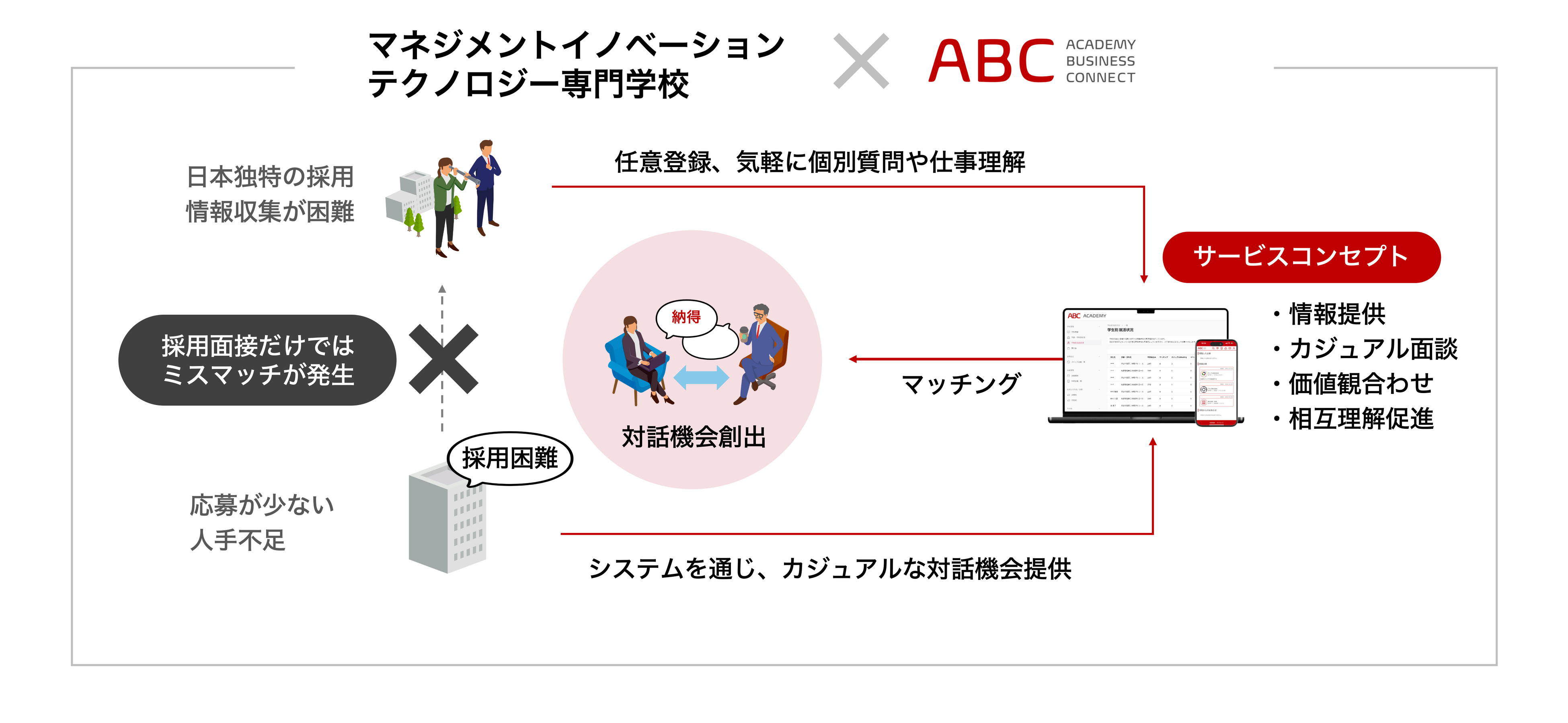 マネジメントイノベーションテクノロジー専門学校と「ABC」の連携図