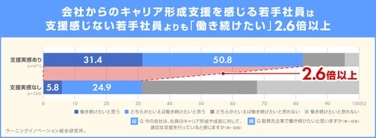 キャリア形成支援がある企業の若手社員、8割超が「今の会社で働き続けたい」。「会社の支援感じない」若手社員は勤続意向が半数以下