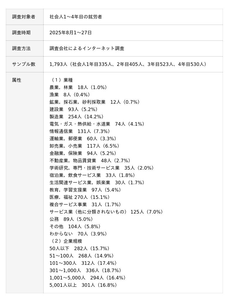 累計20,000社450万人以上の組織開発・人材育成を支援するALL DIFFERENT(オールディファレント)株式会社(所在地:東京都千代田区 代表取締役社長:眞崎大輔)および「人と組織の未来創り(R)」に関する調査・研究を行うラーニングイノベーション総合研究所(R)は、2025年8月1~27日の期間で、社会人1~4年目の若手社員1,793人に対し意識調査を実施しました。本リリースでは若手社員の成長実感やキャリア志向について分析した結果をお伝えします。