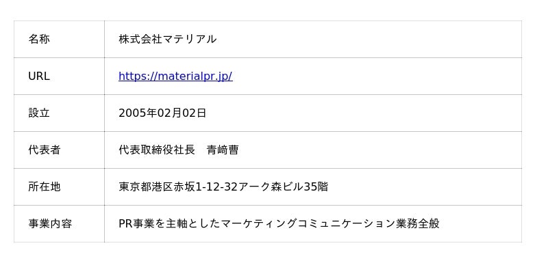 株式会社マテリアル(PR 事業を主としたマーケティングコミュニケーション業務全般)