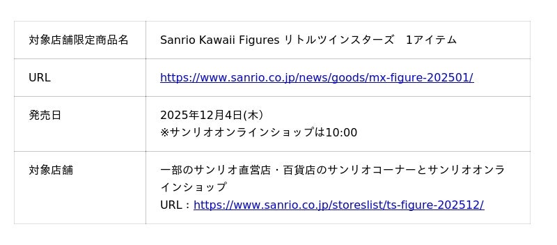 < Sanrio Kawaii Figures商品販売概要>