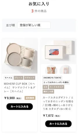 3.マイページ → 「お気に入りギフト」から一覧を確認し、比較・購入する。