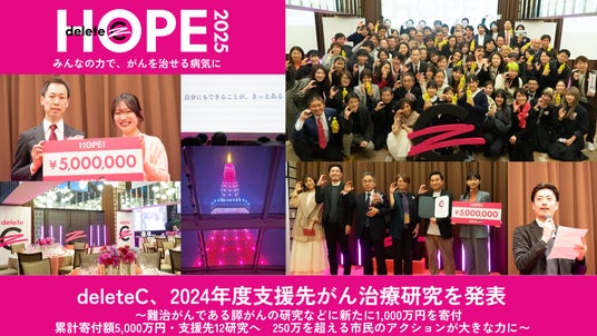 みんなの力で、がんを治せる病気に deleteC、2024年度支援先がん治療研究を発表 ~難治がんである膵がんの研究などに新たに1,000万円を寄付 ~
