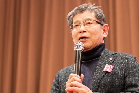 「受賞されました近藤先生、尾池先生、誠におめでとうございます。選考の過程に関しましては、今回は29課題応募がございまして、最初我々医師の方の審査員で書類審査を行いまして科学的な観点、倫理的な観点から評価をしまして、その後候補課題を4課題に絞り込んで、医師以外の審査員の先生方の前での審査という過程を経て今回近藤先生、尾池先生の受賞になったと。そういう過程でございます。お二人の研究の内容についてはもうすでにお話されていますけれども、やはり私ども医師の観点からいっても、お二人の研究が非常に独創性があって、近藤先生のは「プラットフォーム技術」と言いまして、これは新しい全くいろんな融合した技術ですけれども、非常に独自性が高くて、膵がんのみならず、他のがんでも広く応用できる可能性があるのではないかということが高く評価されて、非常に高い点数でございました。それから、尾池先生の方も、日本がリードしている重粒子線の研究で、おそらくこれも世界で他にはできない研究だろうという風に、これも高く評価されて、お二人とも本当に高い評価点数だったという状況でございます。こういった新しい技術は、実は日本全体で非常に求められているところでありまして、こういった基盤となる新しい技術ができて、ここから本当に患者さんに届くまでは長い年月がかかる部分ではございますけれども、非常に「治す」っていう創業理事のお一人中島ナオさんの意思に相応しい研究になるのではないかと期待しております。また、我々医師ではとてもこんなことはできません。小国さんはじめ、みなさん市民のパワーでこのdeleteCが上ってきたということもあわせて、わたし自身、本当に拍手を送りたいと思います。では拍手を送りながら、お二人の先生方にお慶び申し上げます。おめでとうございます。」