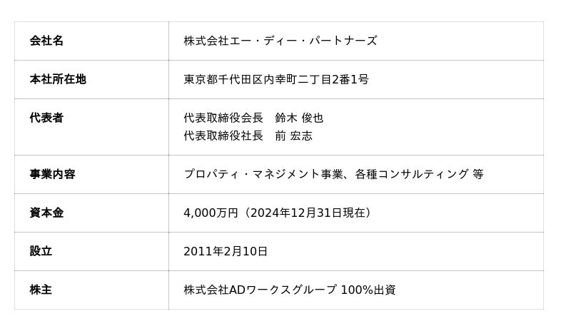 株式会社アーキテクト・ディベロッパー(以下、「当社」)は、2025年11月25日開催の取締役会において、2026年1月13日(予定)を効力発生日として、株式会社ADワークスグループの連結子会社である株式会社エー・ディー・パートナーズ(以下、「エー・ディー・パートナーズ」)が運営する「外部オーナー向けプロパティマネジメント事業」を会社分割(吸収分割)の方法により当社へ承継させること(以下、「本吸収分割」)を決議しましたので、お知らせします。