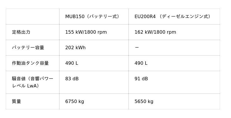 ST400SX(定格出力155kW)クラスの油圧式杭圧入引抜機「サイレントパイラー(TM)」の動力源です。ディーゼルエンジンではなく、電動モーターで油圧ポンプを駆動して機械の油圧動力を得るため、CO2を排出しません。さらに、バッテリー式で大型電源や給電ケーブルが不要なことから、現場導入が容易となり、ゼロエミッション圧入施工の現場を大幅に拡大します。また、静粛性が高く、騒音値は国土交通省の超低騒音基準値(98dB)を15dB下回り、従来のエンジン式パワーユニットと比較しても8dB低減。なお、バッテリー式電動パワーユニットは他クラスへの展開も順次予定しています。