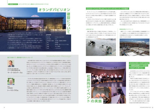 大阪・関西万博で当社が施工した「オランダパビリオン」。その建設を通じて得た学びと、社員が現場で体感した価値を、特集ページ「オランダパビリオン建設から学ぶ GOOD CYCLE」で紹介しています(P.20~)。併せてぜひご一読ください。