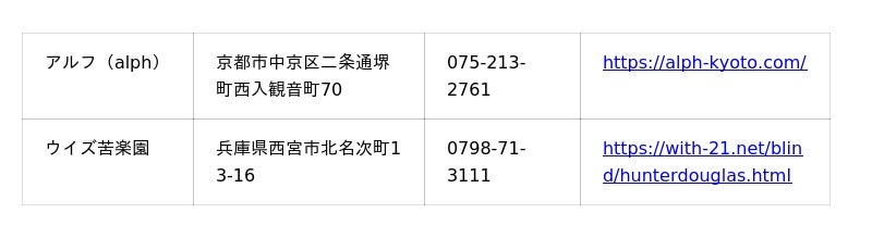一覧はこちら:https://www.hunterdouglas.jp/dealer/shop/