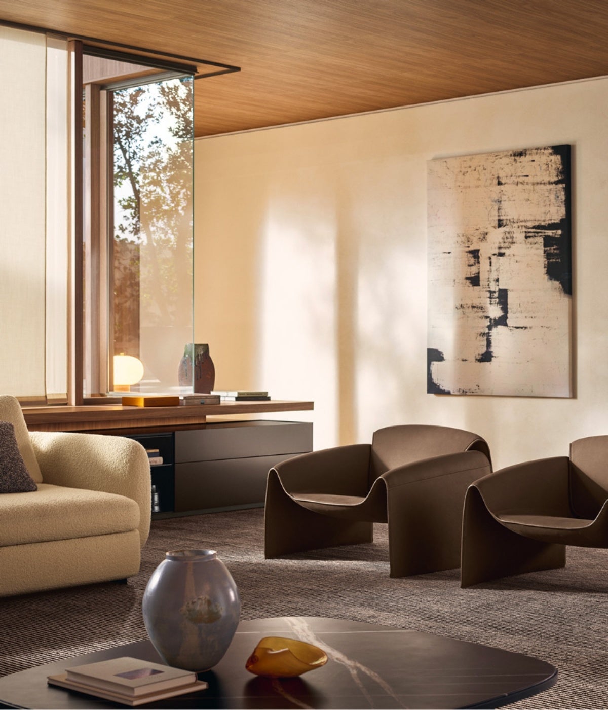 <Poliform>は、北イタリア・ブリアンツァ地方(コモ湖近く)にあるラグジュアリーなインテリアをトータルで提供するイタリア屈指のファニチャーカンパニーです。1942年にブランドの前身となる小さな家具工房からはじまり、1970年に現在の形の元となる<Poliform>としてシステムユニットを中心としたモダンイタリアブランドへ生まれ変わります。以来、ハイエンド向けの製品を製造し、その技術とデザインで、象徴的でスタイリッシュなコレクションを発表し続け、リビングダイニング(DAY AREA)、寝室(NIGHT AREA)、キッチンに至るまでほぼ居住空間のすべてのエレメントを1つのブランドで提供できる唯一の存在としてその地位を確立しています。