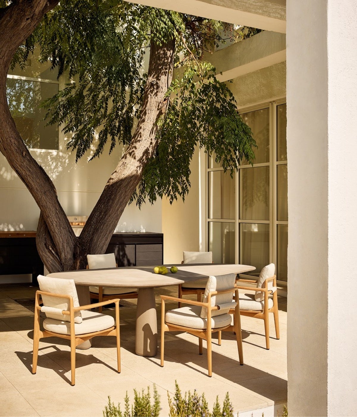 OUTDOOR(屋外家具)屋内と屋外の境界をなくし、自然との対話を楽しむOutdoorコレクション。卓越した耐久性と洗練されたデザインで、テラスや庭をもう一つのリビングへと変えます。解放感あふれる空間で、至福のくつろぎをご堪能ください。
