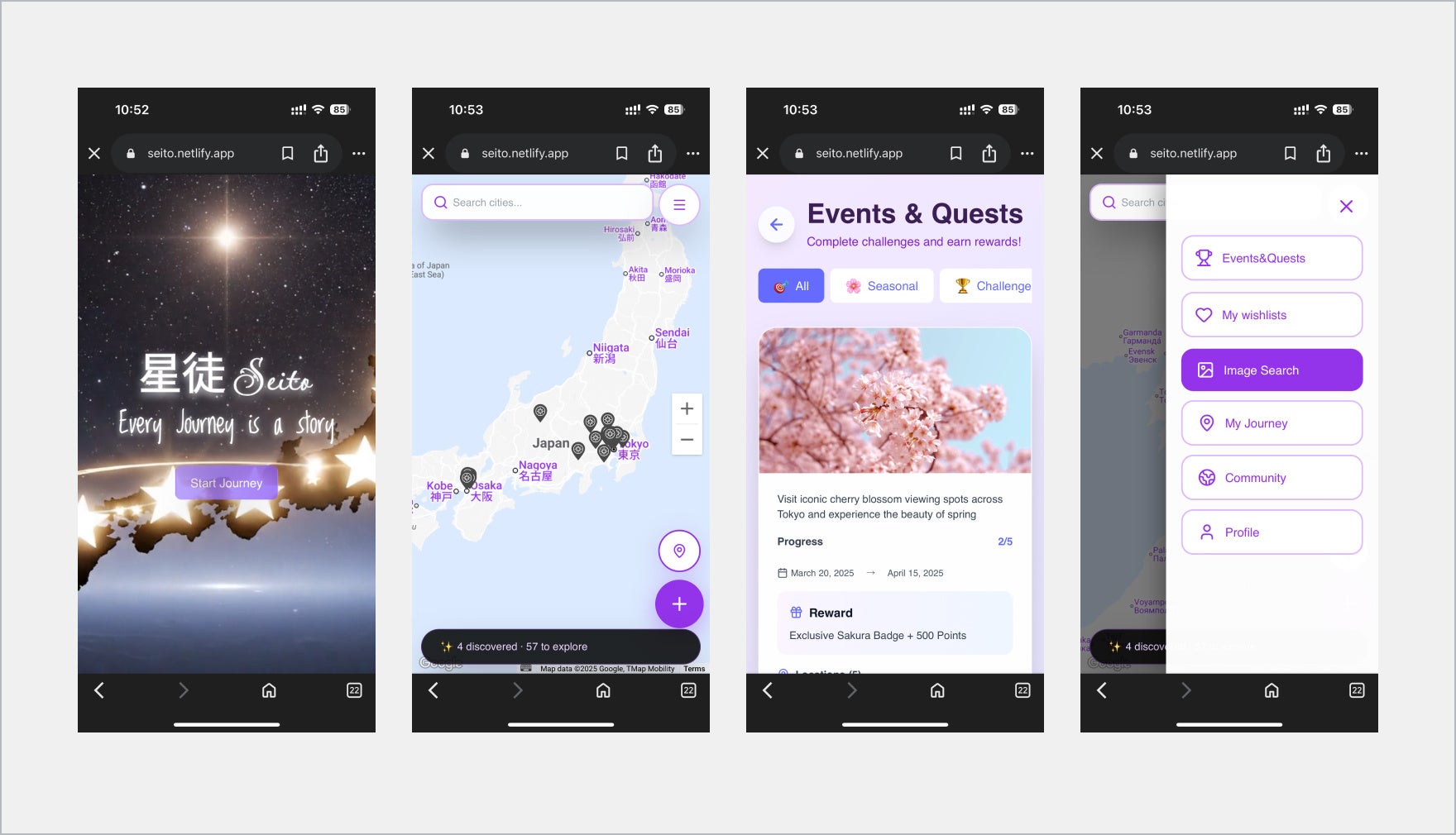 ・概要: 訪問予定地からオリジナルの聖地巡礼マップを作成。RPG要素を組み合わせながら各スポットをめぐる自分だけの「旅行物語」を作成できます。