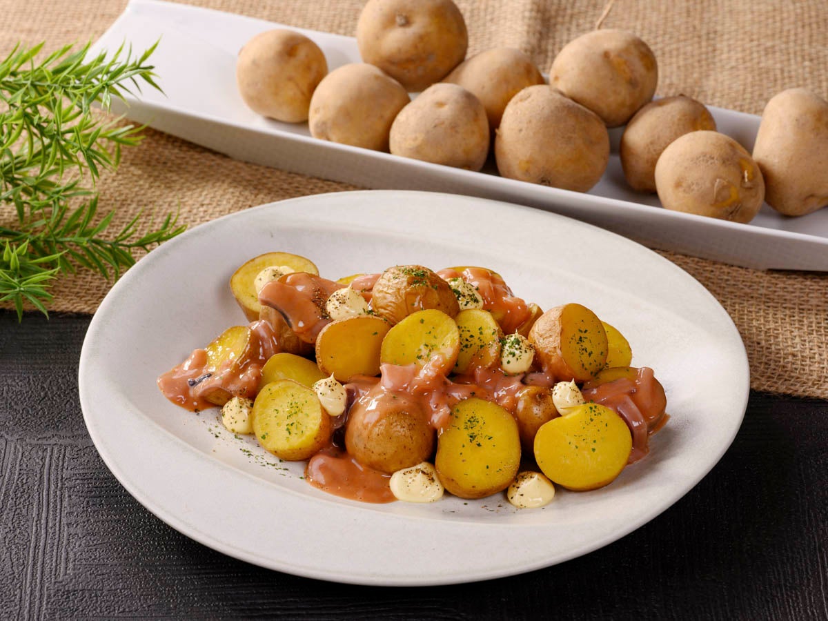 (右)ほくほくのじゃがいもに塩辛を添えたクセになる一品、"イカの塩辛じゃがバター"【釧路・帯広限定】