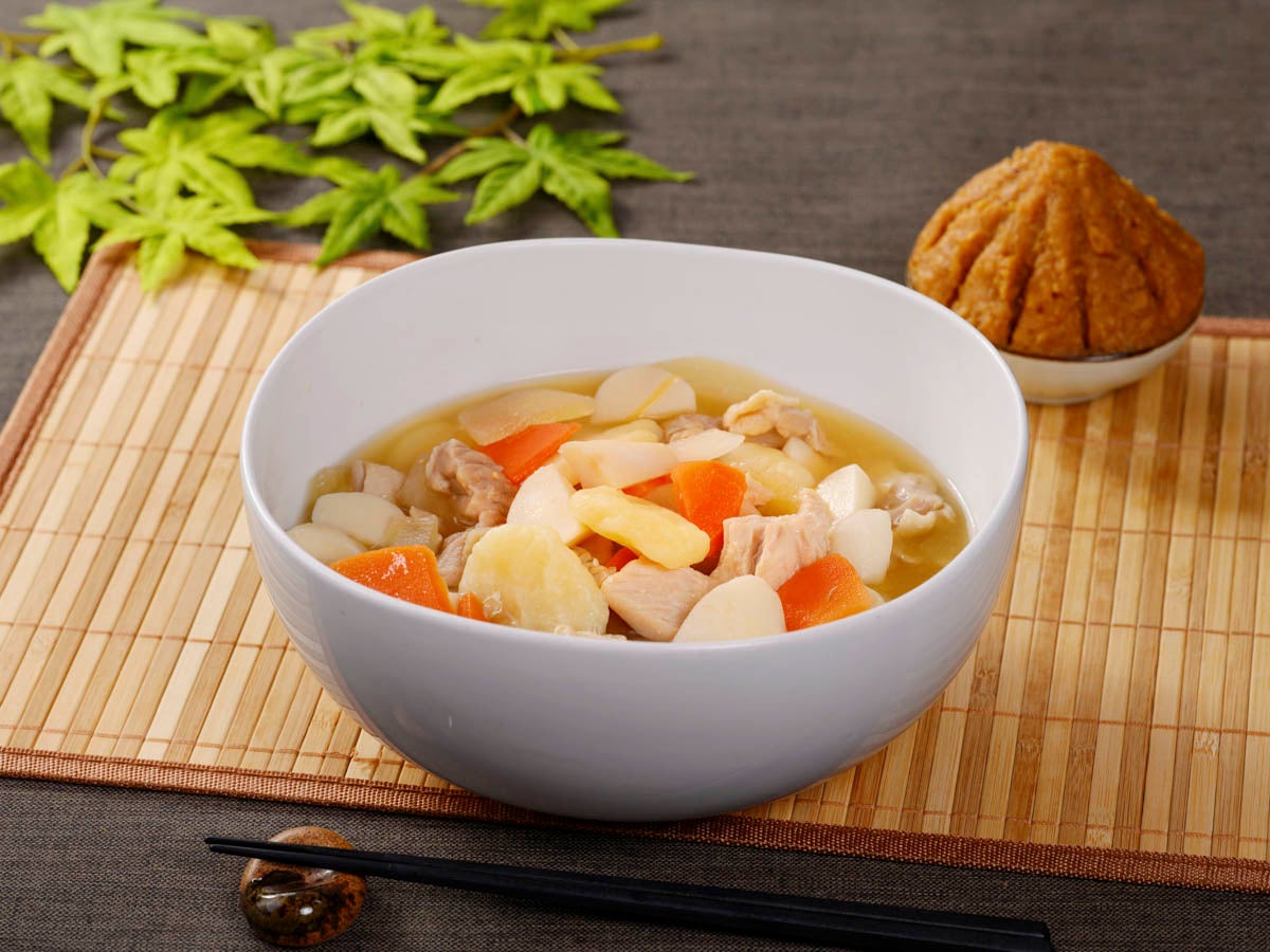 (右)芋の旨みと香ばしいだしの味わいが広がる"ふるさとの味わい 芋煮スープ"【山形・天童限定】