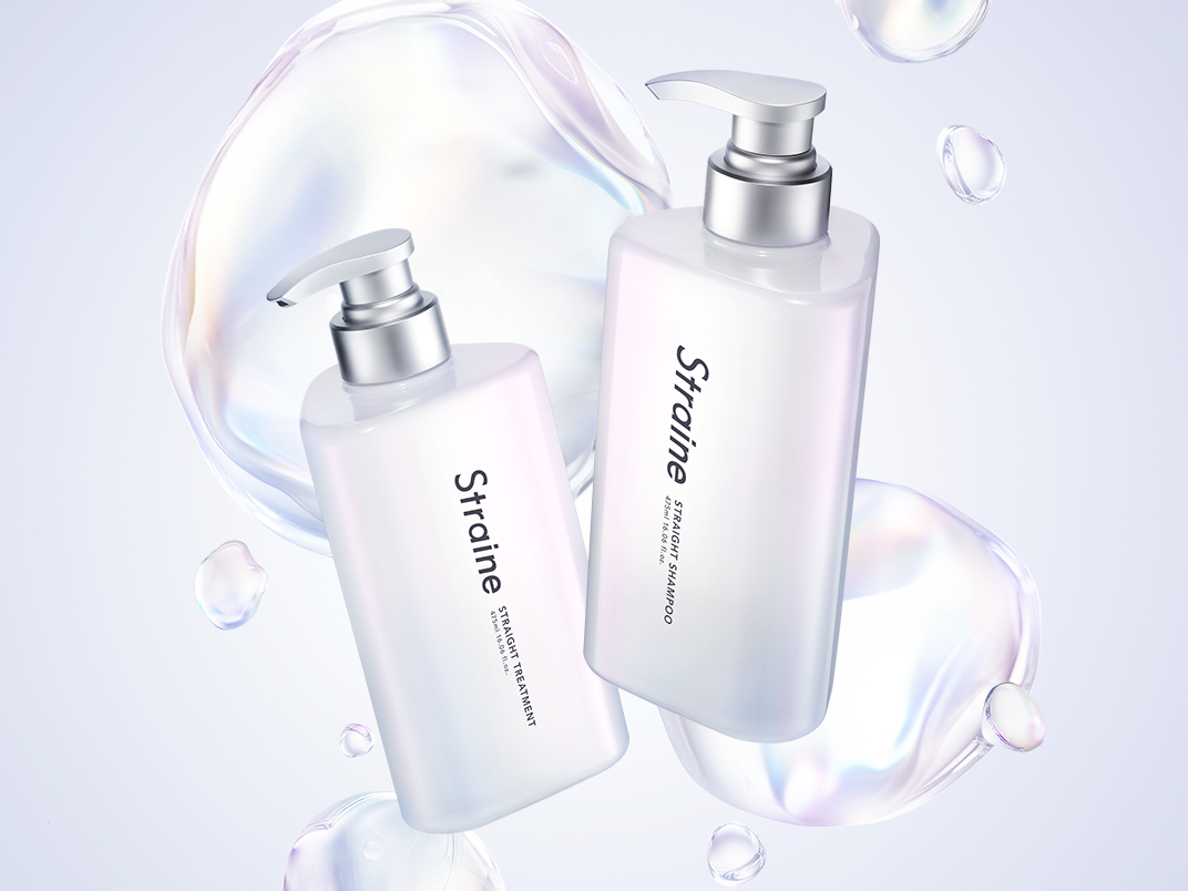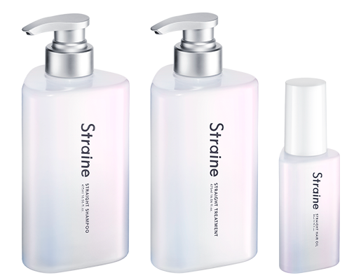 Straineは、縮毛補修発想から髪内部の構造に着目し、世界初*¹の処方で、ストレートシルクケア成分*²を独自配合。“まっすぐ、しなやかにまとまる髪”を目指して、科学的に研究・開発したストレートヘアケアブランドです。世界初*¹の処方で、ストレートシルクケア*³成分を独自配合した「ストレートシャンプー」「ストレートトリートメント」「ストレートヘアオイル」の3アイテムを展開しています。