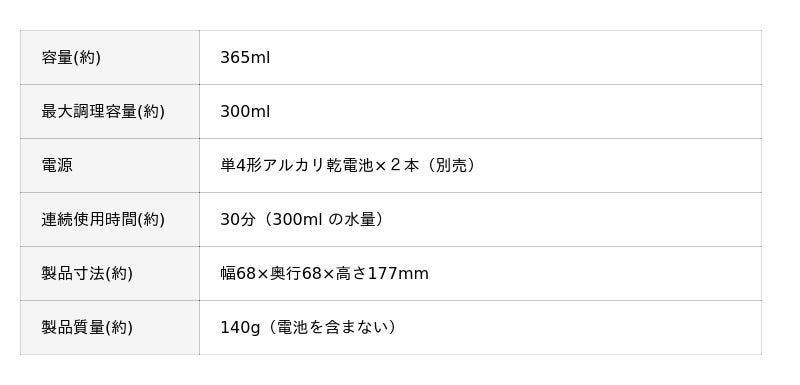 本製品は、プロテインや⻘汁などダマが残りやすい粉末ドリンクを、振らずに自動で攪拌する電動シェイカーです。