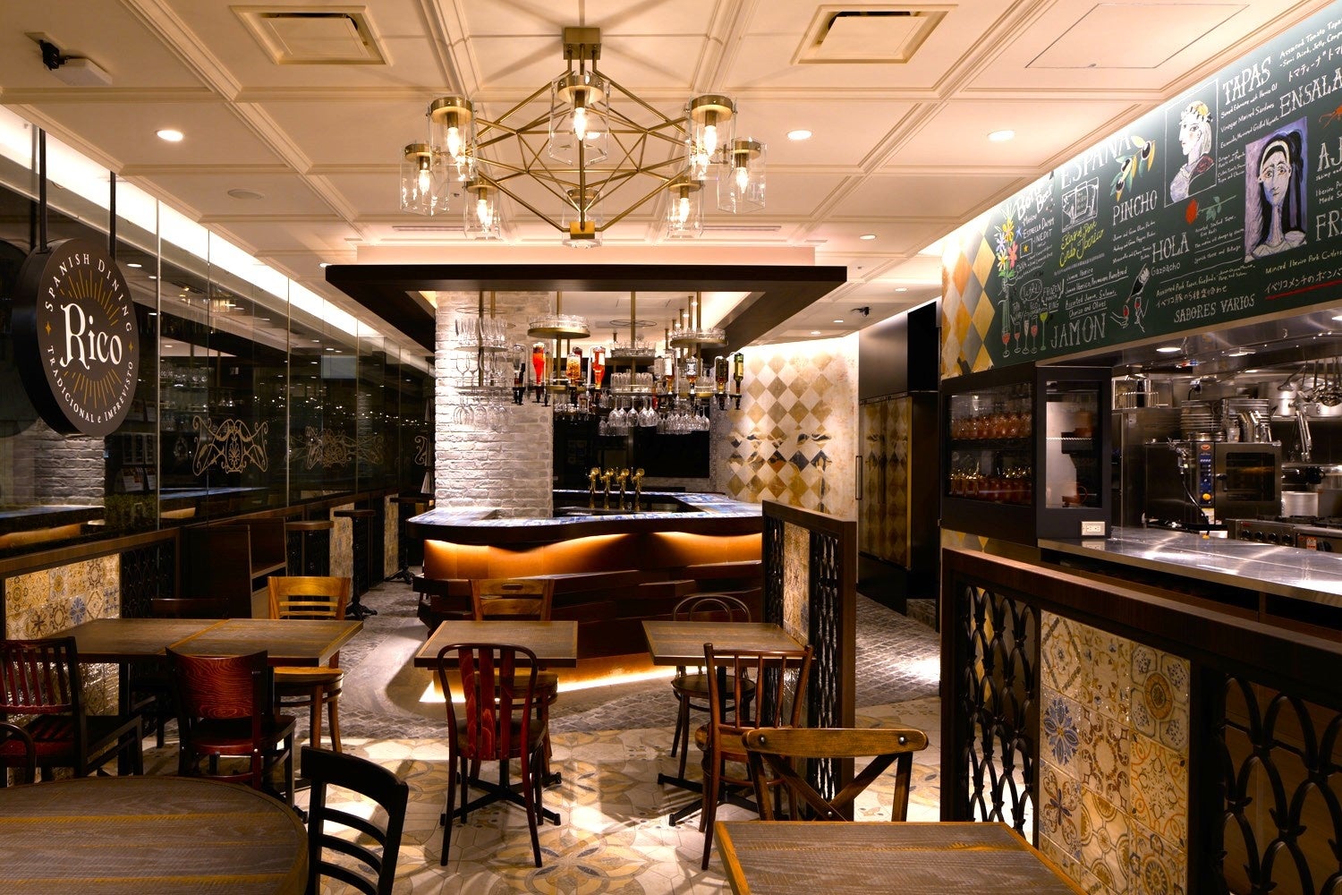 「Rico」は、「TRADICIONAL e IMPREVISTO(伝統的で思いがけない)」をコンセプトに、スペイン各地の本格スペイン料理を、同国各都市を演出した空間で提供するスパニッシュダイニング。伝統的な料理から気軽に楽しめる多彩なピンチョス(フィンガーフード)、タパス(手軽な小皿料理)まで、スペインの“思いがけない驚きや楽しさ”が散りばめられた料理の数々を、本場さながらの雰囲気の中でお楽しみいただけます。