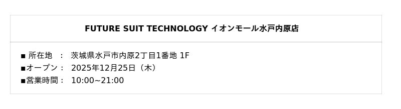 次世代型 オーダースーツ新ブランド「FUTURE SUIT TECHNOLOGY」フューチャースーツテクノロジー 2025年12月25日(木)誕生!