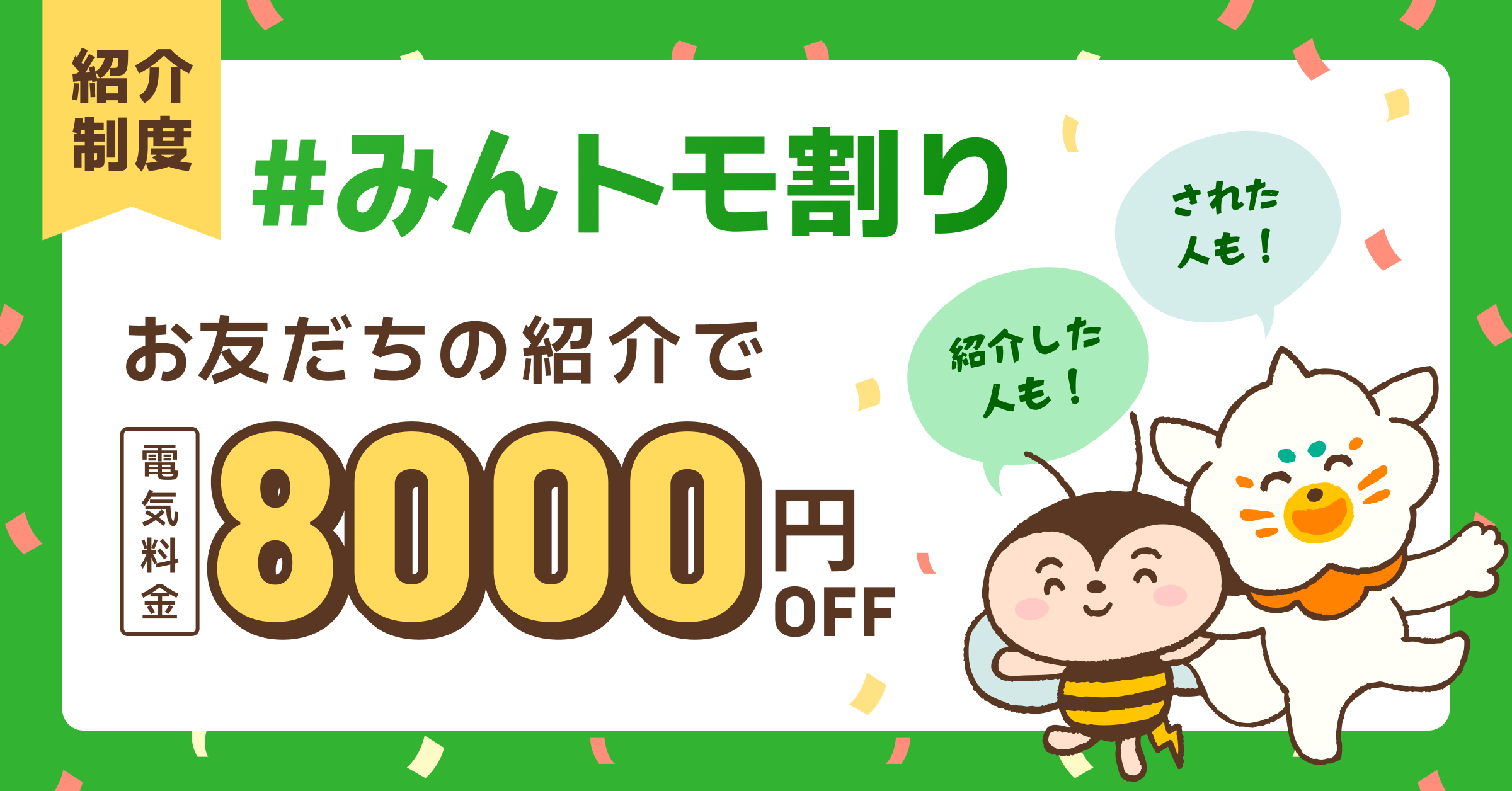 本キャンペーンは、みんな電力が提供する紹介割「みんトモ割り」との併用も可能です。