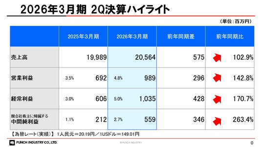 パンチ工業株式会社が2026年3月期第2四半期 決算説明会資料を公開