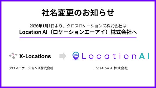 クロスロケーションズ株式会社(東京都渋谷区、代表取締役:小尾 一介、以下「クロスロケーションズ」)は、昨日11月27日の臨時株主総会の決議を経て、2026年1月1日付で社名を「Location AI株式会社(ロケーションエーアイ株式会社)」へ変更し、コーポレートアイデンティティ(CI)を刷新することをお知らせいたします。当社は2018年の創業以来、位置情報ビッグデータをAI技術のマシンラーニングにより処理する「Location Engine(TM)」および、そのデータを分析・可視化するクラウドプラットフォーム「Location AI Platform(R)(以下、LAP)」を開発・提供してきました。