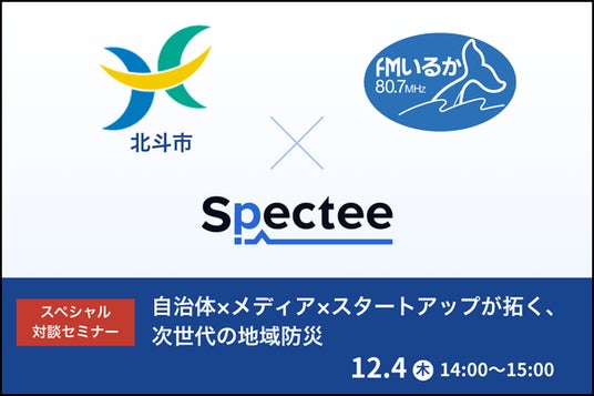 レジリエンス領域でDXを推進する株式会社Spectee(本社:東京都千代田区、代表取締役:村上 建治郎、以下 Spectee)は、この度、北斗市・FMいるかをお招きし、地域防災の未来を探るスペシャル対談セミナーを2025年12月4日(木)に開催いたします。