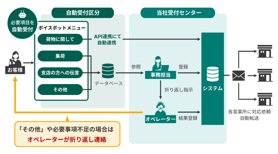 配達に関する総合的なお問合せ受付窓口となるカスタマーセンターでは、繁忙期や自然災害など非常時における呼量増加への対応が課題となっていました。オペレーターによるお客様への寄り添いやホスピタリティを重視してきましたが、限られた人員だけでは応答率100%の維持が困難でした。そこで、効率化を図るためにIVR(自動音声応答)の導入も検討しましたが、機械的な対応による顧客体験の低下を懸念され、「人の温かさ」を損なわない仕組みが求められていました。取り組みの成果・ポイント