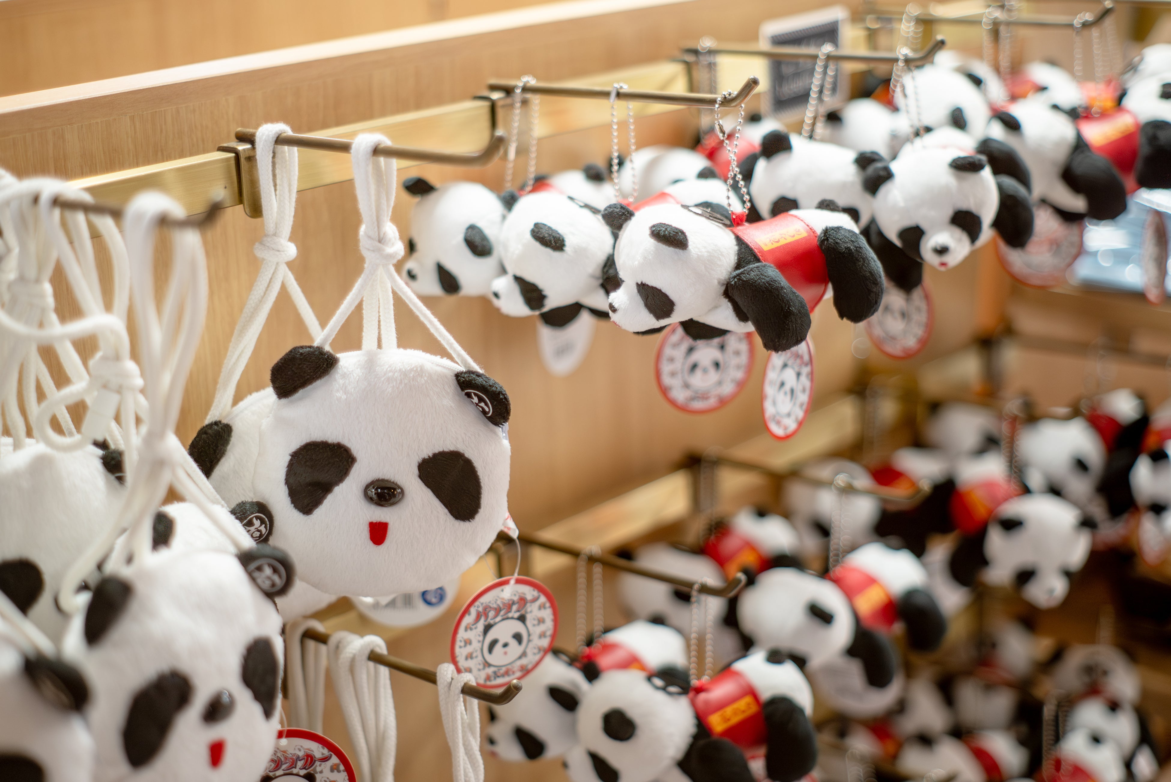 ▲商品一例(マルハナ商店にはハズレなしのぬいぐるみくじやパンダカーグッズやお菓子が揃っています!)