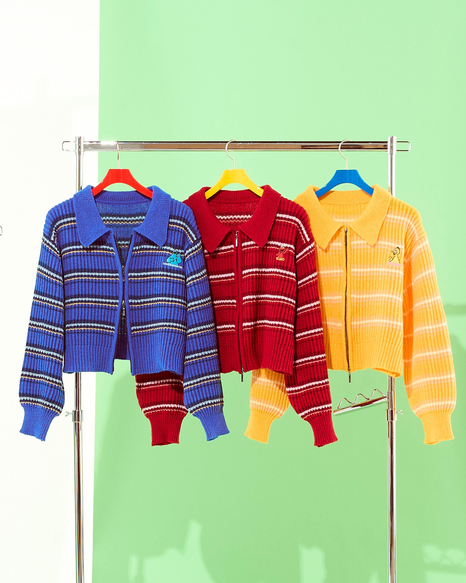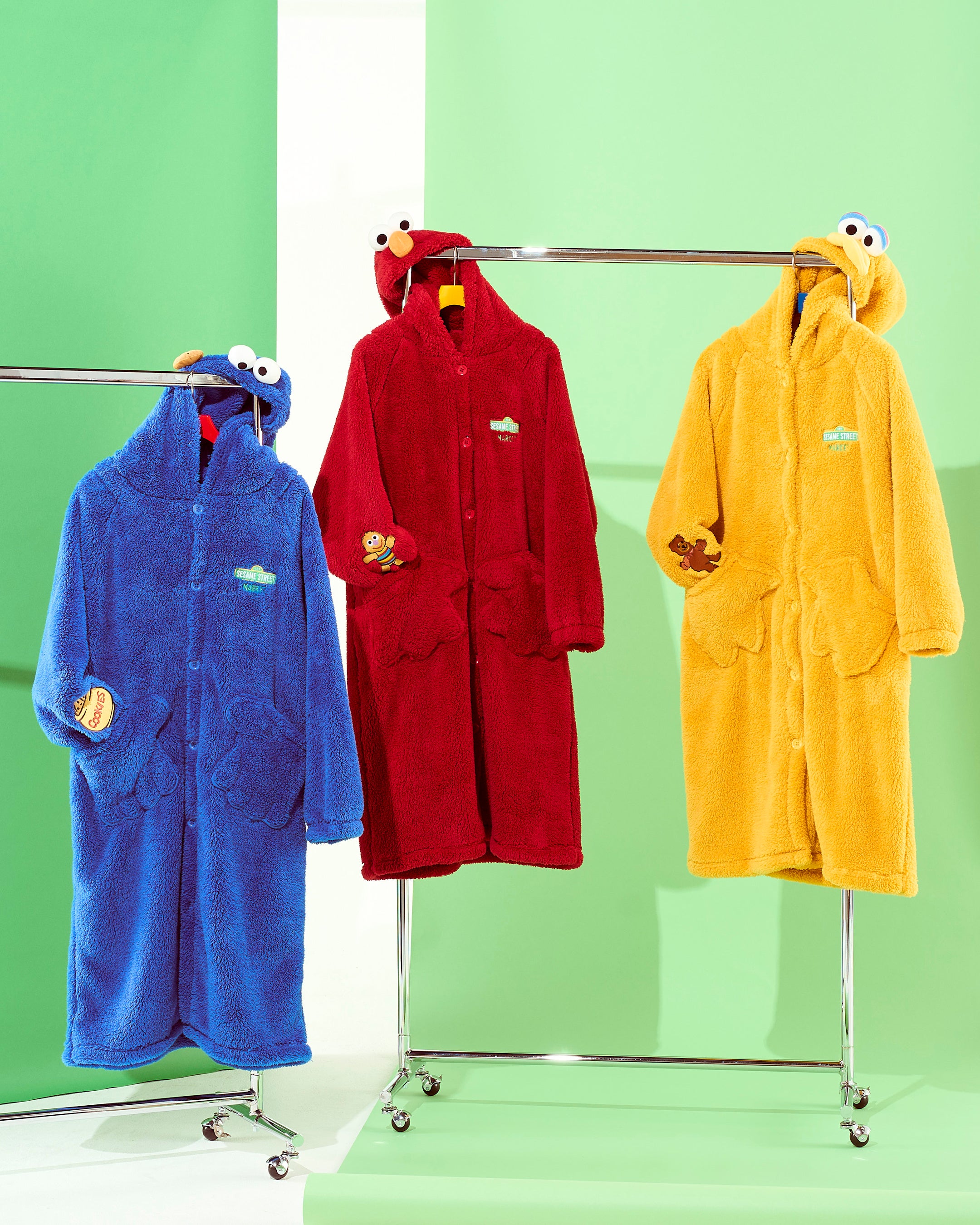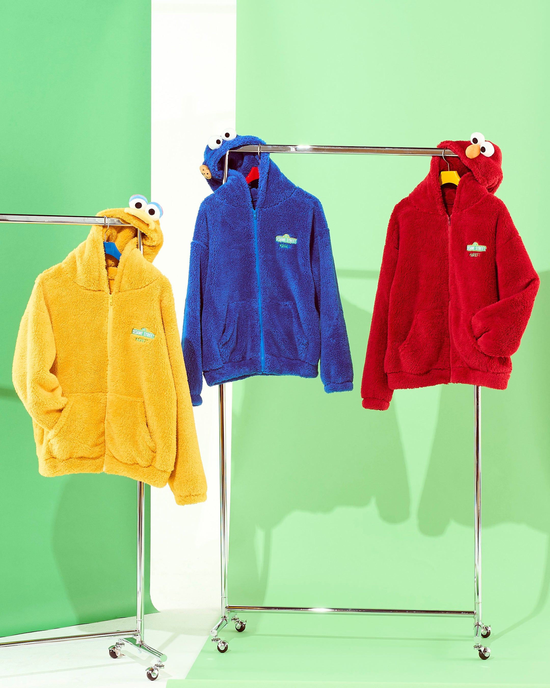 胸元には「SESAME STREET MARKET」のブランドロゴ刺繍を、袖口にはキャラクターたちにちなんだモチーフを刺繍であしらいました。