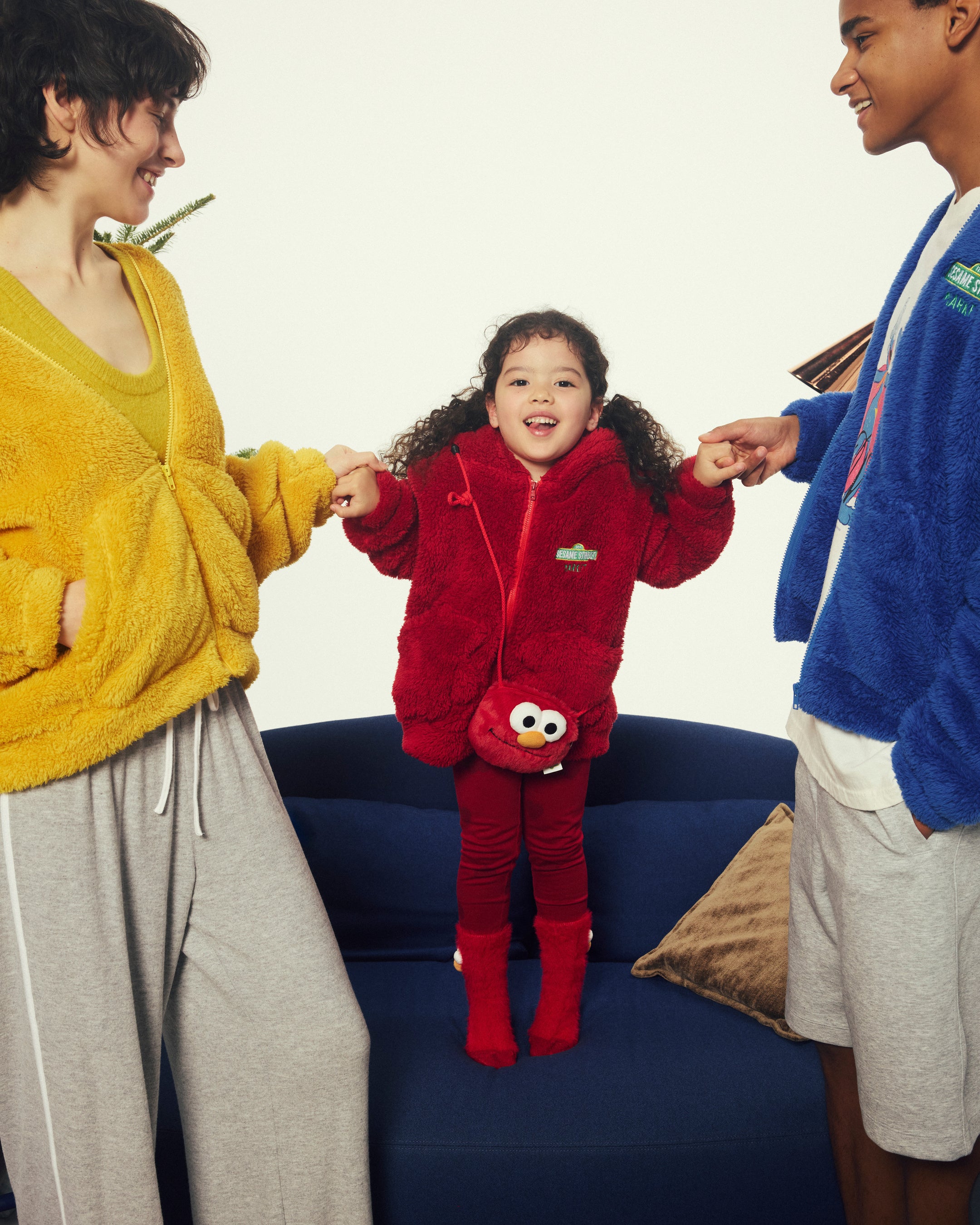 エルモ、クッキーモンスター、ビッグバードをモチーフに、気分もパッと明るくなるようなビビッドなカラーリングと、ぬいぐるみのようなふわふわとした手触りが魅力の“なりきり”アイテムが登場。キャラクターたちの立体的な“目”や、キッズ用フーディー・着る毛布にあしらったキャラクターの“手”の形をしたポケットなど、遊び心あふれるディテールにも注目です。今回は、大人・キッズ用、さらにお出かけ・おうち時間用と、用途やシーンに合わせて豊富なアイテムをご用意しました。親子やパートナー、友人とのリンクコーデ・ペアルックにもぴったりのラインアップです。