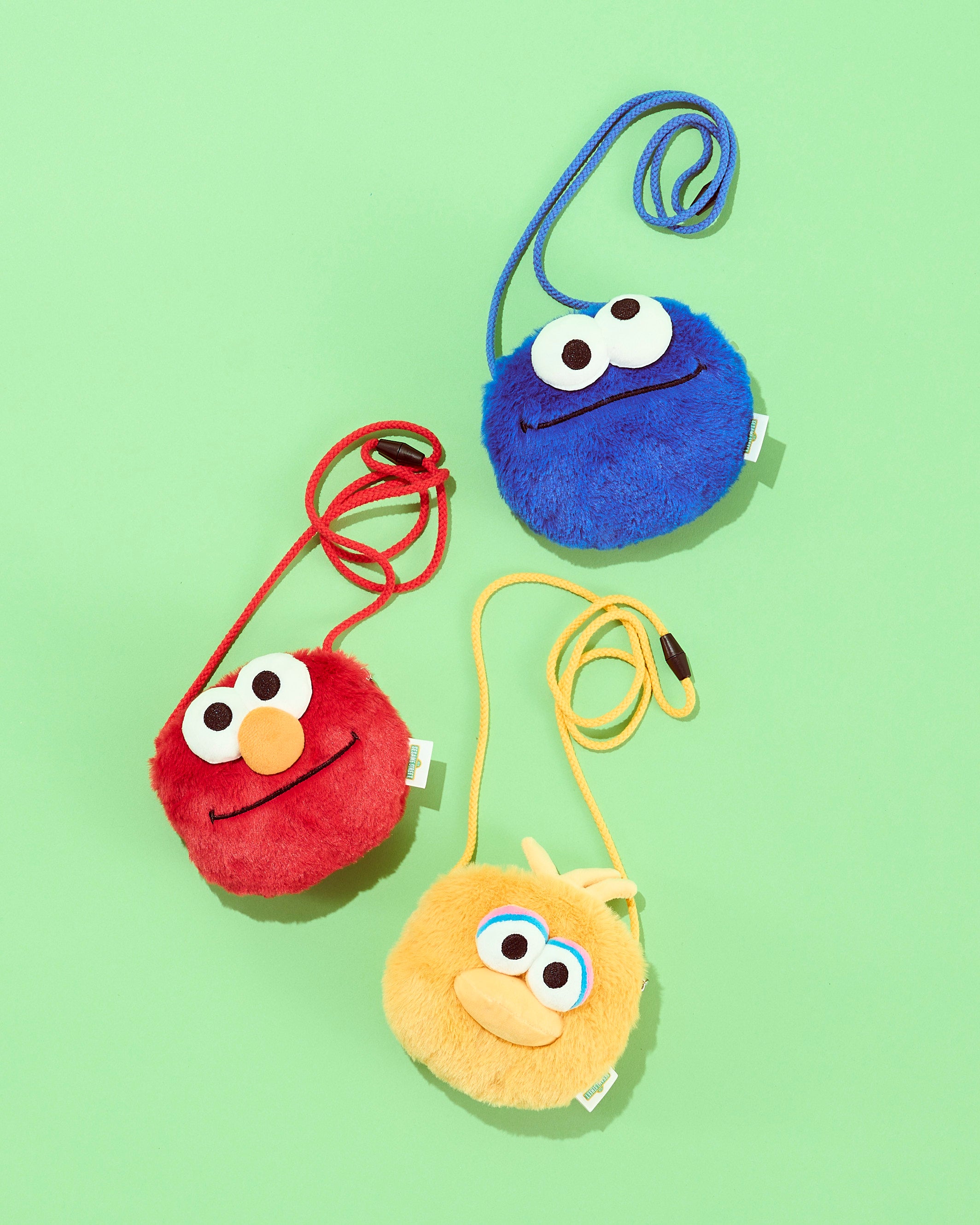 (二枚目左より:ブルー(クッキーモンスター)、レッド(エルモ)、イエロー(ビッグバード))