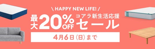 コアラスリープジャパン株式会社(本社:東京都渋谷区、代表:ルスラン・プソノク)は、2025年2月24日(月)~4月6日(日)の間、最大20%OFFになる「コアラ新生活応援セール」を公式販売サイトにて開催します。セール期間中はマットレスやピロー、ソファーなど、コアラ(R)️の全商品を最大20%OFFでお買い求めいただけます。新生活のスタートに寝具を見直して、スリパ=スリープパフォーマンスを高めて毎日を快適に過ごしてみませんか?