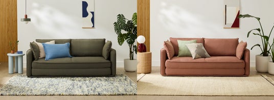 1人暮らしの狭い部屋でも、ベッドとソファーどちらも欲しい…そんな願いを叶えてくれるのがソファーベッド。大好評につき完売中の「コアラソファーベッド CUSHY」に、待望の新カラーが2月24日から加わりました。たった5秒でソファーからベッドに早変わりするだけでなく、コアラマットレスと同じクラウドセル(TM)︎を使用したベッドの寝心地も最高です。リラックス感あふれる緑色の「グリーンワトル」と落ち着いたピンク色の「サンセットラスト」が、お部屋に心地よいアクセントを加えてくれます。2人掛け(セミダブル)129,900円~