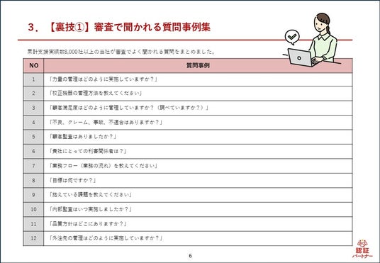 Pマーク、 ISOコンサルにおける支援実績 No.1(注1)のISO/Pマークの取得・運用支援サービス「認証パートナー」を提供する株式会社スリーエーコンサルティング(本社:大阪府大阪市、代表取締役社長:竹嶋 寛人)は、このたび新資料『【運用に役立つ裏技掲載】ISO9001担当者が初めに読むべき資料』をサービスサイトにて公開し、無料プレゼントを開始いたしました。