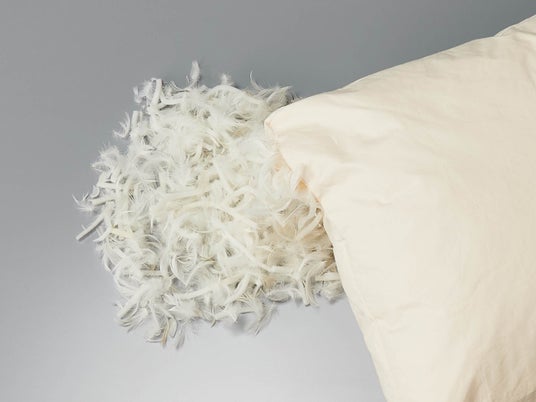 羽毛ならではの沈み込みとウレタンの反発が適度に身体を押し返すことを狙った中材を使用しています。またそれらを包み込む布地にダウンプルーフ生地を使用することで、羽毛の飛び出しを防ぎます。