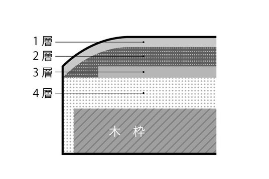 1. 4種類のウレタンを積層した座面