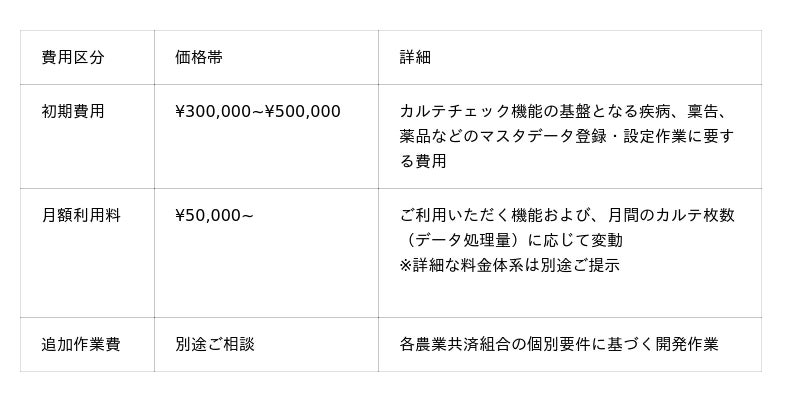 現在、本サービスは、特定の電子カルテフォーマットに限定して提供しておりますが、今後は各農業共済組合で利用されている他フォーマットや、紙カルテをデータ化するOCR(画像認識)技術などを活用した対応も視野に入れ、さらなる業務効率化を支援します。