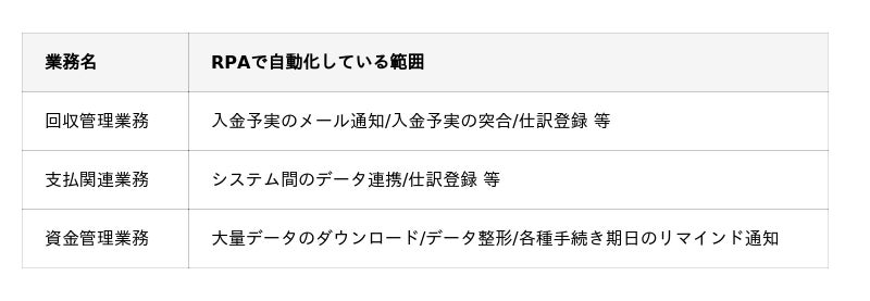 従来お客様からの入金の度に、経理担当が営業にメール連絡をしていたところを、RPAで自動送信できるシナリオを作成しました。また、入金予定と実績を自動照合して伝票を起票する、未収金や入金予定も自動で通知することを可能にし、最終的には外部サービスと連携して、マスター連携や仕訳データ取り込みなど支払処理も自動化できる形を整えました。年間を通じてタイマーで自動実行される仕組みが完成したことで、この業務に関しては、人が一切介在せずに処理を続けられるスキームになっています。
