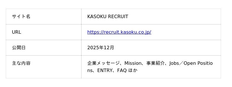 カソク株式会社、リクルーティングサイト「KASOKU RECRUIT」を公開