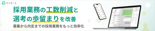 採用管理ツール「らくるーと」、導入企業において選考移行率+20%、内定承諾率195%などの成果を確認