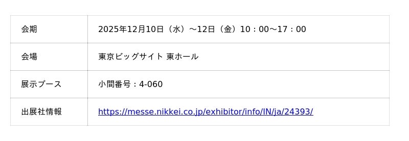 三菱ケミカルインフラテック株式会社(東京都千代田区 代表取締役:芹澤 佳津也、以下「当社」)は、2025年12月10日(水)~12日(金)に東京ビッグサイトで開催される「社会インフラテック2025 第8回インフラ維持管理・老朽化対策総合展」(主催:インフラメンテナンス国民会議、日本経済新聞社、日経BP)に出展いたします。