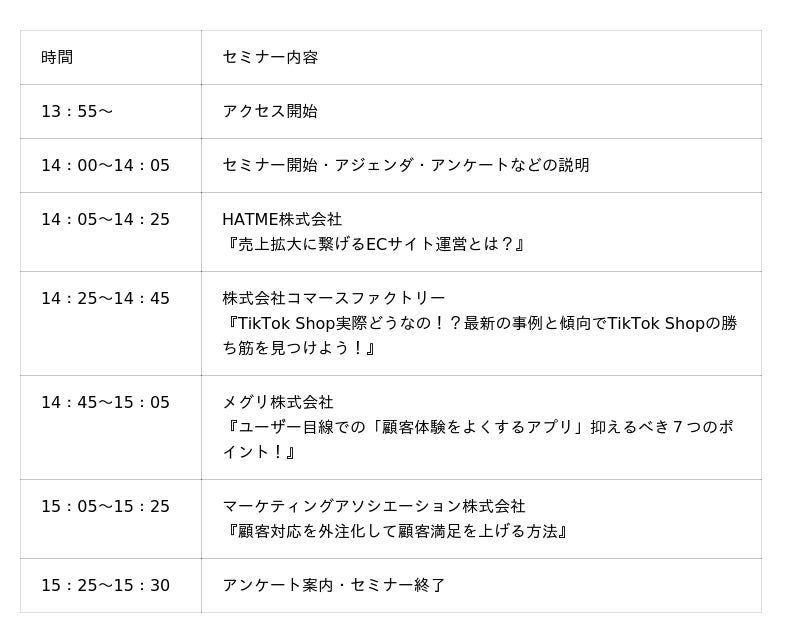 ECサイトの運営代行サービスを提供しているマーケティングアソシエーション株式会社(本社:東京都台東区 代表取締役:中園広和、以下当社)は、2025年12月23日(火)に、マーケティングアソシエーション株式会社主催のウェブセミナー【2026年次の一手!顧客体験をアップデートする実践方法~自社EC戦略×TikTok Shop×アプリ×カスタマー対応~】を開催します。