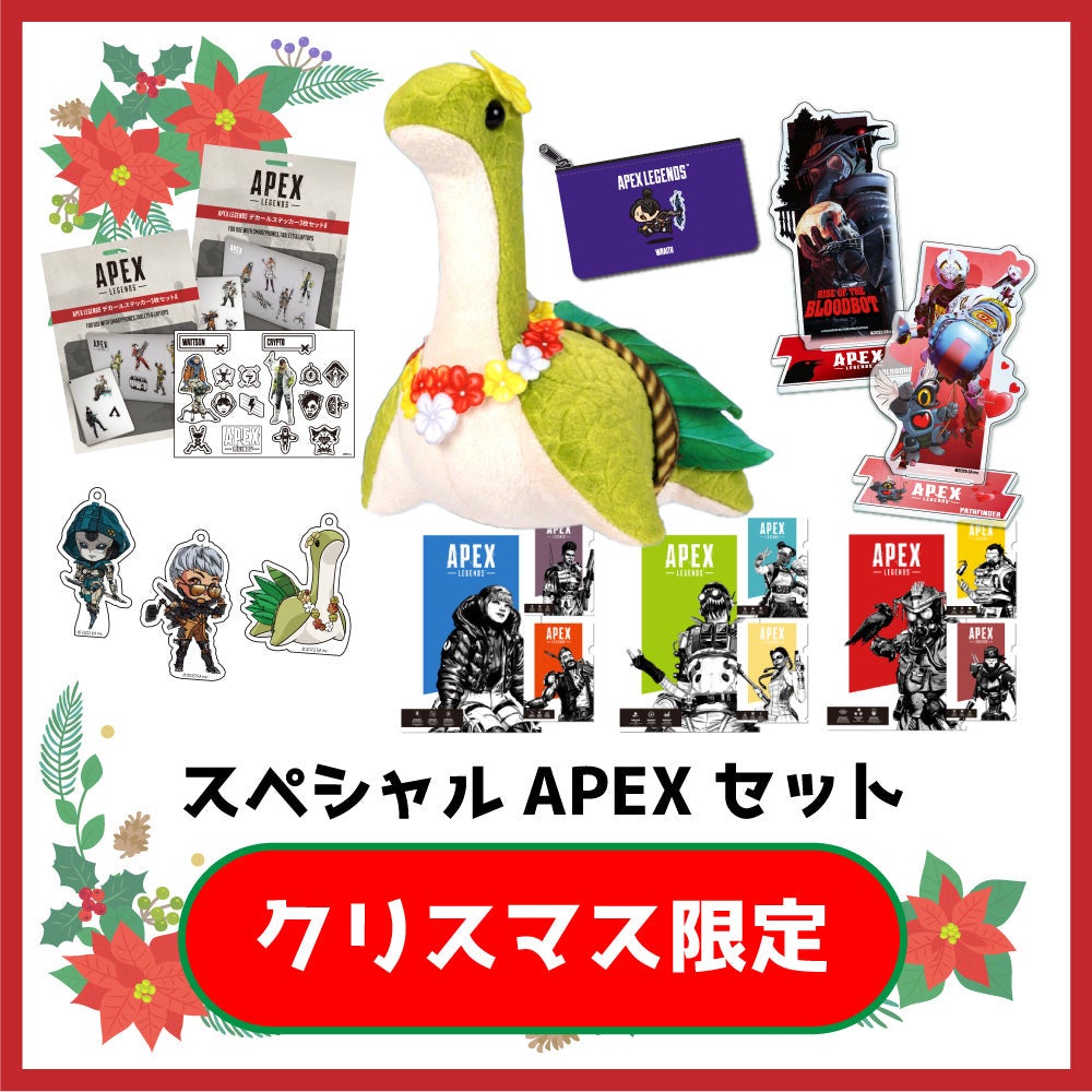 『Apex Legends』からは、ネッシーぬいぐるみ等を含む「スペシャルセット」が登場。オンラインストアで対象商品をご購入の方には、以前好評を博したオリジナルステッカー(ランダム)をプレゼントいたします。