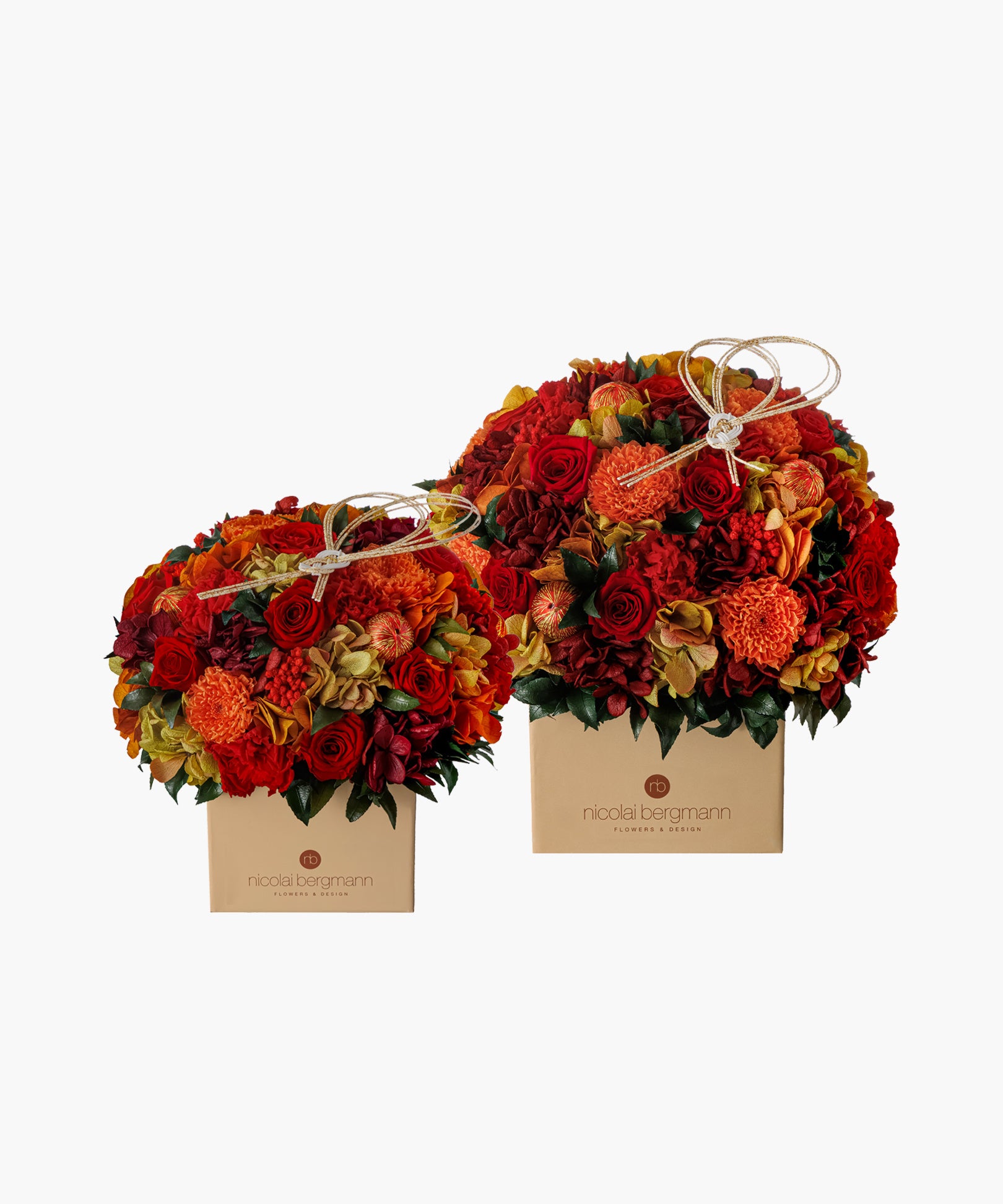 ニューイヤー限定プリザーブドフラワーキューブ「New Year Cube - Akane(ニューイヤーキューブ - アカネ)」S(φ15.5×H15cm)30,800円 / M(φ17.5×H17cm)44,000円