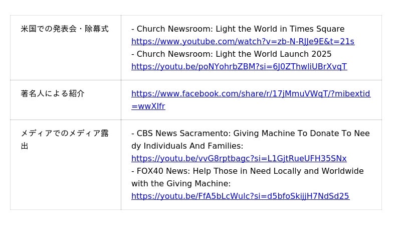 日本では「GIVEマシン(ギブマシン)」と呼びますが、海外では「Giving Machine(ギビングマシン)」と呼ばれ、信条や宗教に関わらず様々な団体がこの取り組みを支援しています。様々なニュースや、著名人やスポーツ選手のトークショーで取り上げられています。