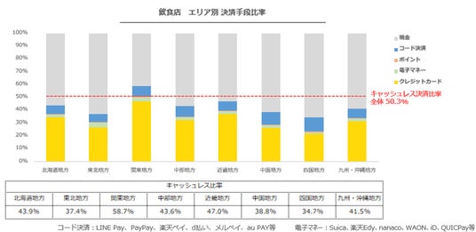 - キャッシュレス決済比率が最も高い関東地方は58.7%で、前月から0.3%減少した。