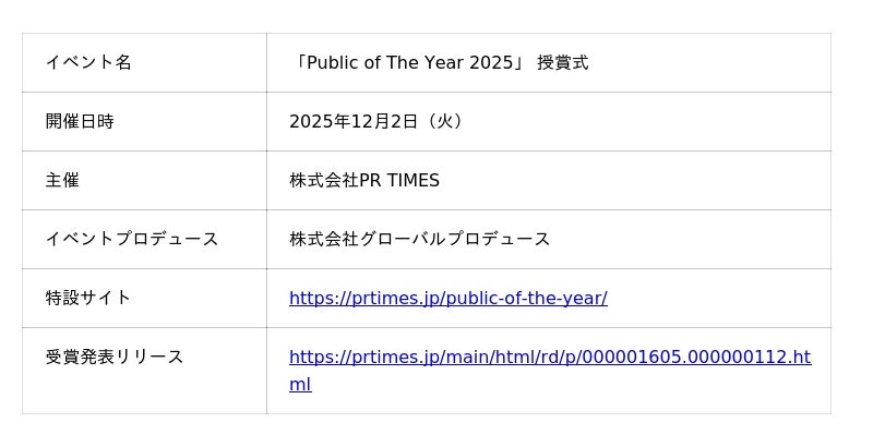 ■ 「Public of The Year 2025」授賞式 概要